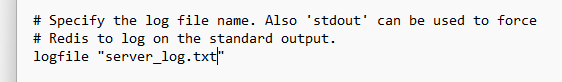 기본값으로 log 파일이 생기지 않도록 logfile 값이 "" 빈 문자열로 되어 있는데, 그림처럼 어떤 파일로 log를 기록할 것인지 로그 저장할 파일명을 입력 후 실행하면 redis가 실행된 것에 대한 log 파일이 생성된다.
