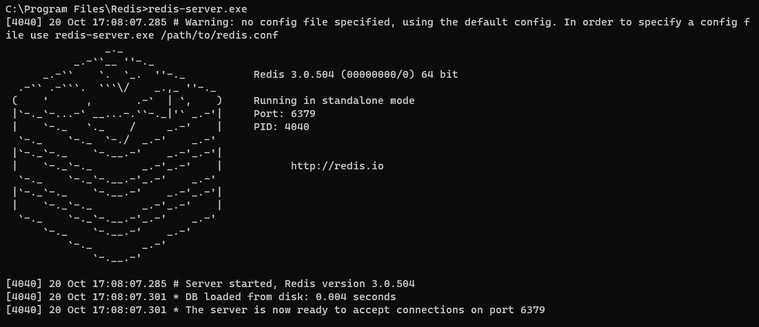 - 다시 아까 redis-server.exe 재실행. (맨 하단에 포트번호 표기됨)