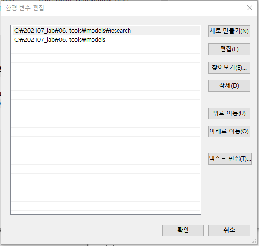 (예: C:\202107_lab\tools\models;C:\202107_lab\tools\models\research)