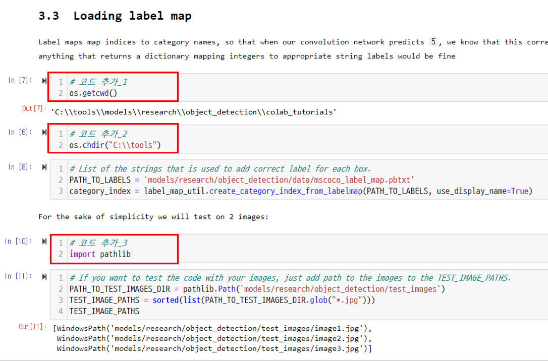 - Loading label map 부분에서 디렉토리 주소를 바꿔주는 작업을 해줘야 한다