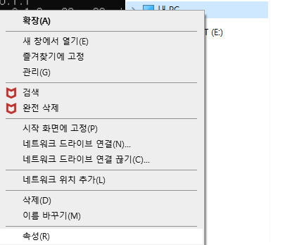 - 탐색기에서 내 pc를 클릭한 후 마우스 오른쪽 버튼 클릭, 속성에 들어간다
