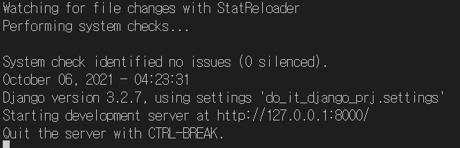 # 장고에서 제공하는 테스트 서버 실행 python manage.py runserver