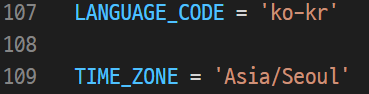 ③ TIME_ZONE = 'Asia/Seoul' 로 변경(대략 109번 라인)